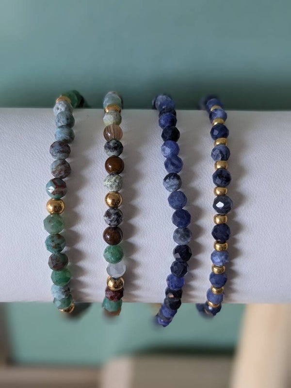 Armband van blauwe natuursteen kralen met een roestvrij stalen sluitinkje met verlengkettinkje. De armband is makkelijk in omvang aan te passen.