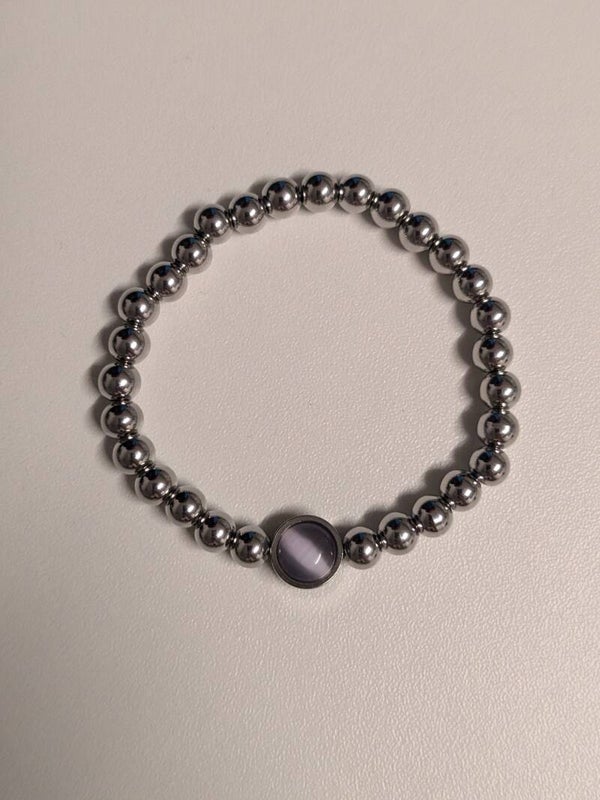 Armband met 6 mm zilveren roestvrij stalen kralen en een mooie paars steen.