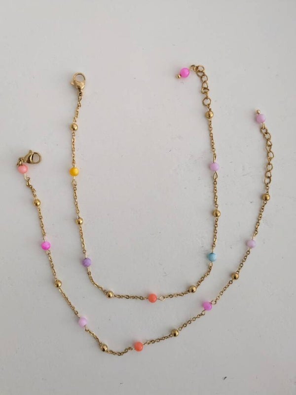 Enkelbandje van Roestvrij staal met gekleurde kralen.