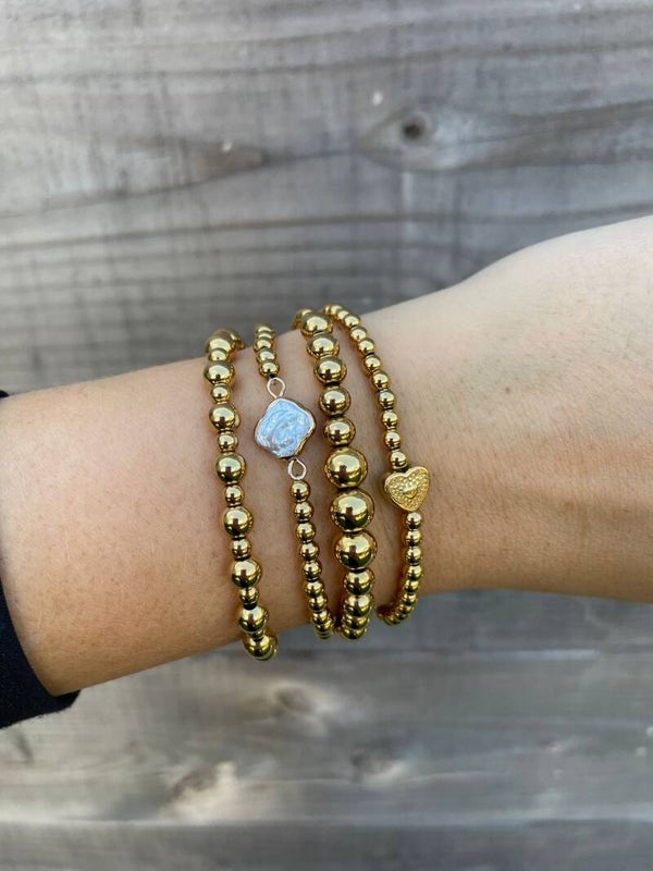 Armband met 4 mm rvs kralen en een parel kraal in het midden.