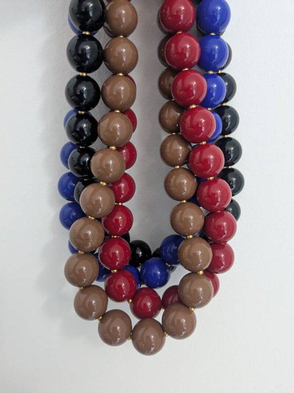 Ketting met grote 15 mm kralen. Helemaal de trend van nu. Nu in de kleuren bruin, zwart, rood en blauw.