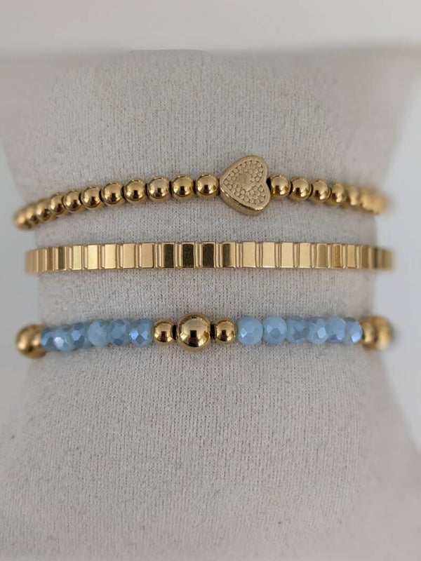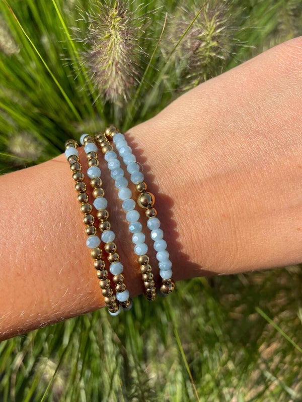 Armbanden van roestvrij stalen 4 mm kralen en blauwe facetkralen. Leuk als set of los.